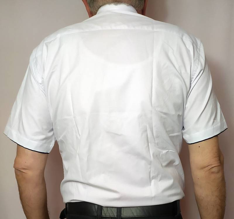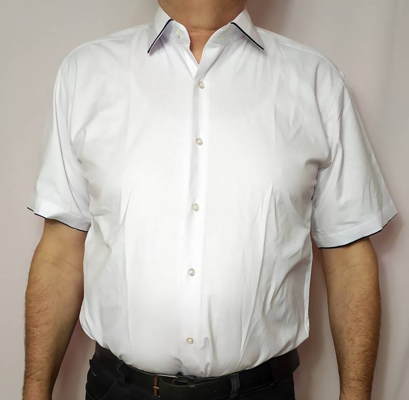 Fehér, rövid újju férfi ing, kényelmes, puha anyagból.