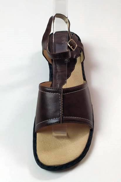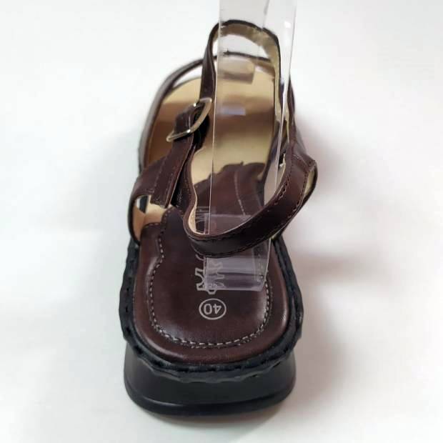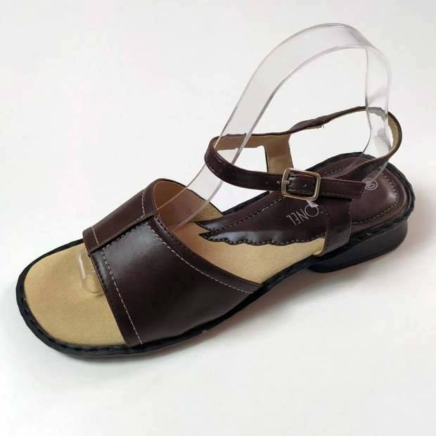 Könnyed tavaszi-nyári szandál. Fazonja kényelmes, nadrághoz, szoknyához egyaránt viselhető. Klasszikus barna színe igazán elegáns megjelenést kölcsönöz. Sarka nem túl magas, ezért fiataloknak és idősebbeknek is bátran ajánljuk. Puha talpbélése kíméli a lábat.