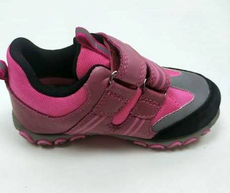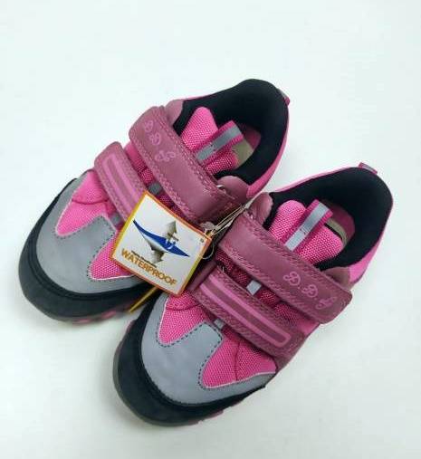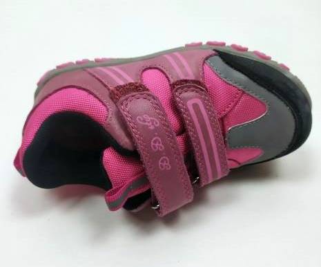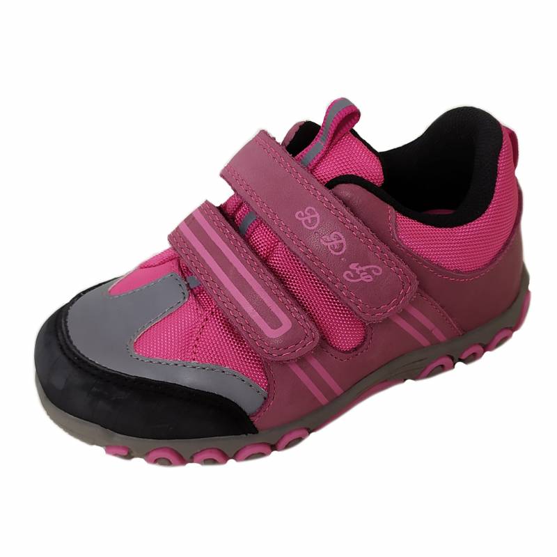 Rózsaszín, mályva és szürke, tépőzárral szályozható, D.D.Step AQUA-TEX vízálló sportcipő, Kívül bőrből+textilből, belül jól szellőző textil béléssel, bőr talpbetéttel