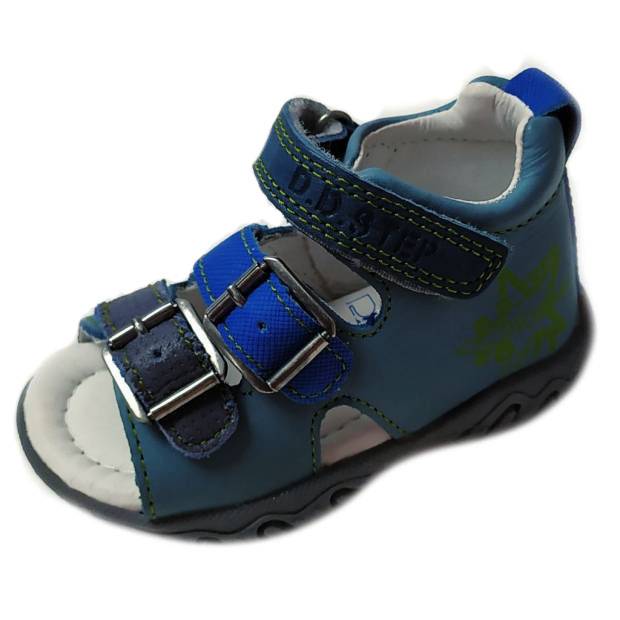 Tépőzárral és két darab csattal szabályozható DD Step kényelmi fiú szandál. Kék színű, kívül-belül bőrből készült, valamint a talpa természetes kaucsuk gumitalp, ami jól tapad, hajlik és strapabíró. A szandál orr része nyitott, sarokrésze pedig zárt.
