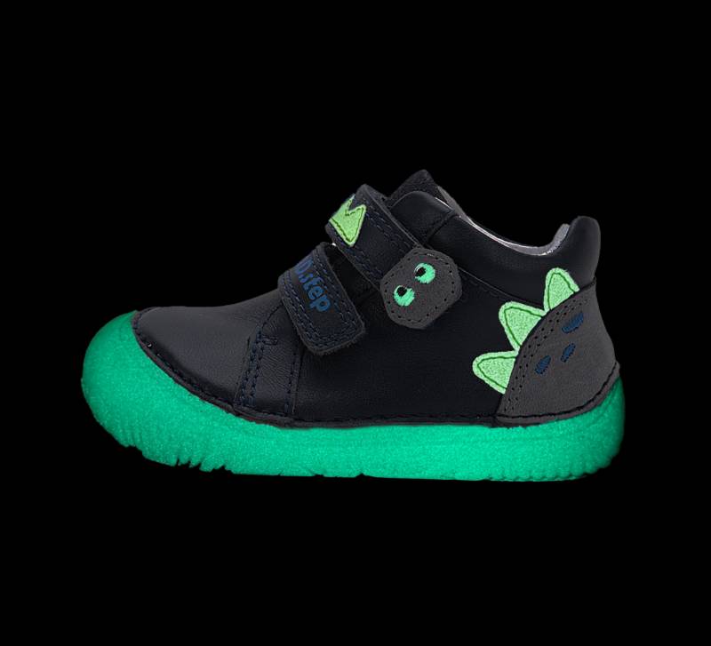 Ez a DD Step valódi bőr gyerekcipő a mozgékony mindennapokra készült: erősített orra ellenáll az ütődéseknek, rugalmas talpa kíméli a lábat futás és játék közben. A kivehető talpbélés higiénikus, könnyen tisztítható megoldás, a valódi bőr felsőrész pedig tartós és jól szellőzik. A sötétben még világít is. A talpa olyan érzésű, mintha mezitláb lenne benne a talp.