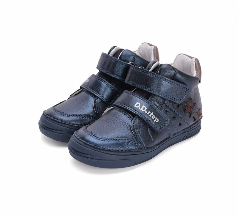 Ez a DD Step valódi bőr gyerekcipő a mozgékony mindennapokra készült: erősített orra ellenáll az ütődéseknek, rugalmas talpa kíméli a lábat futás és játék közben. A kivehető talpbélés higiénikus, könnyen tisztítható megoldás, a valódi bőr felsőrész pedig tartós és jól szellőzik.