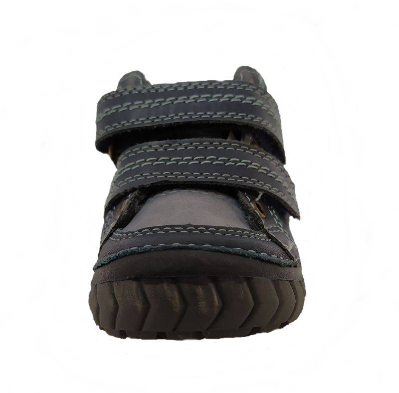 Tépőzárral szabályozható, kívül-belül bőr gyerekcipő. Bélésének köszönhetően nem fog benne fázni a láb. Vízlepergető cipő (A vízlepergető képesség fenntartása érdekében ajánlott vízlepergető spray rendszeres használata.) Csíkos díszítésének és sötét színének köszönhetően tökéletes választás az esős, saras napokra is. A cipő orr része erősített, hogy a cipőt és a gyerek lábát is védje.