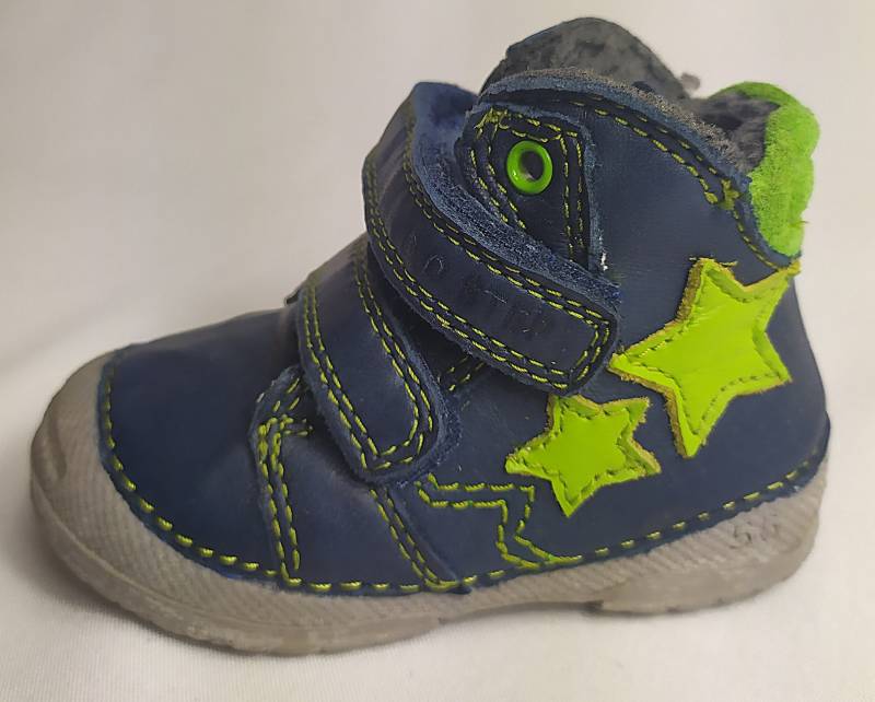 Neonzöld csillagos DD Step fiú cipő. Belül melegen bélelt, hogy ne fázzon a gyerek lába. A cipő orr része erősített, így a cipő élettartamát is hosszabbítja, valamint a gyerek lábujjait is jobban védi. Felsőrésze bőrből kéészült, talpa pedig természetes kaucsuk gumiból, ami jól tapad és strapabíró.