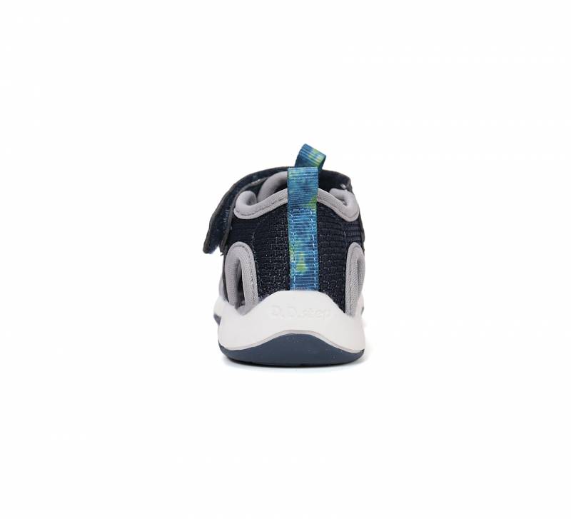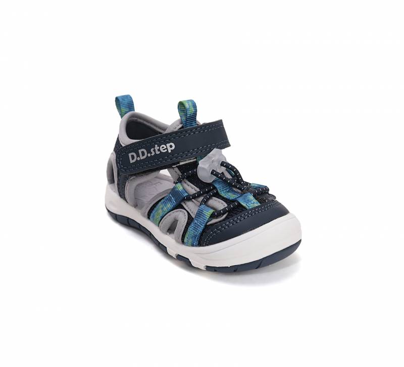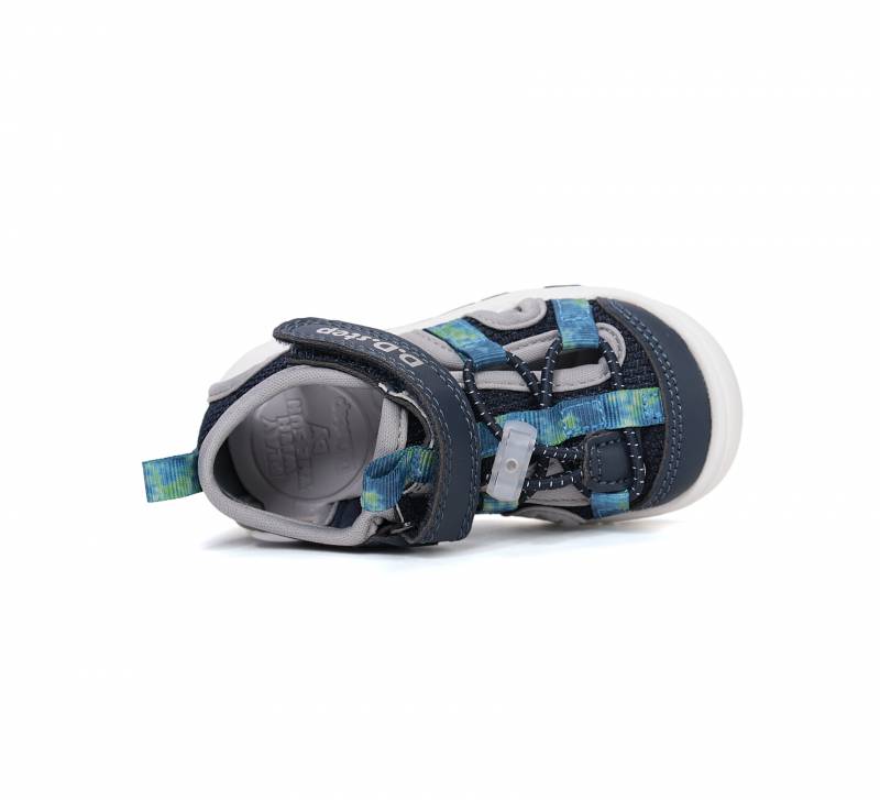 Gyorsan száradó anyagból készült ez a szandál, tépőzárral és állítható gumifüzővel használható. Sötétkék színű, fehér gumírozott talppal, ami jól tapad.