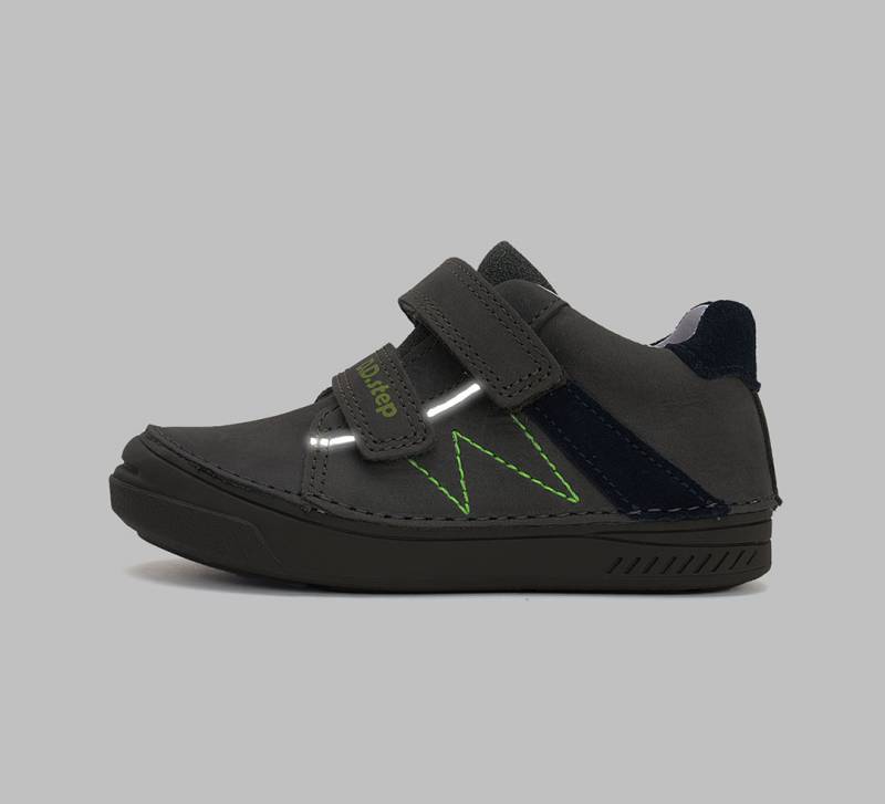 A DD Step cipől valódi bőrből készülnek, kivehető béléssel a könnyű tisztítás érdekében. Az erősített orr extra védelmet nyújt a gyerek lábának, és a cipő számára is.