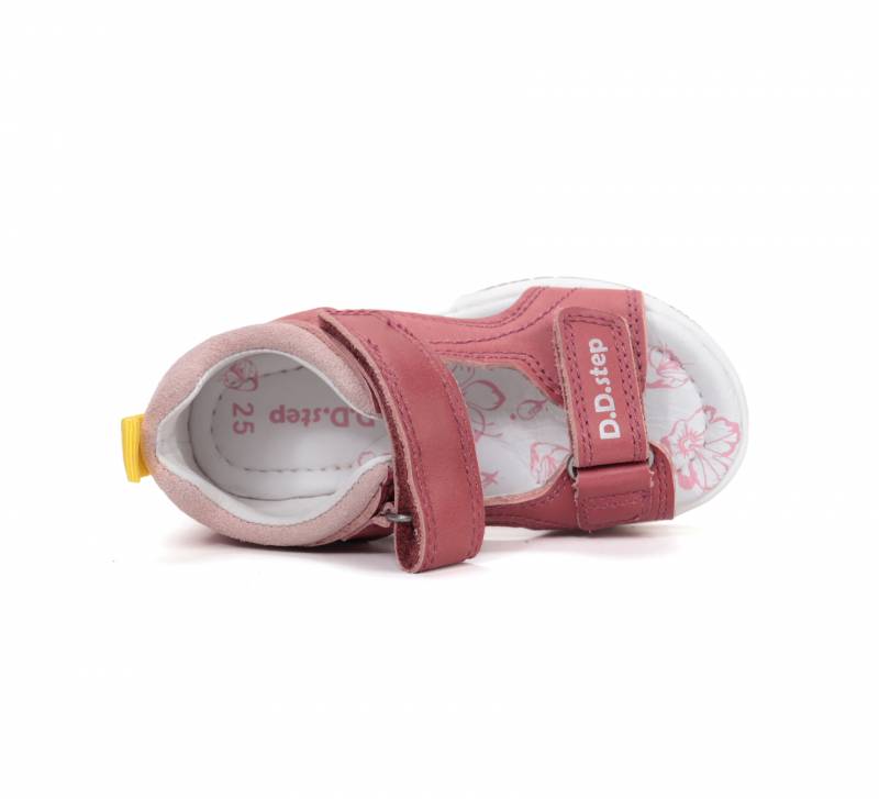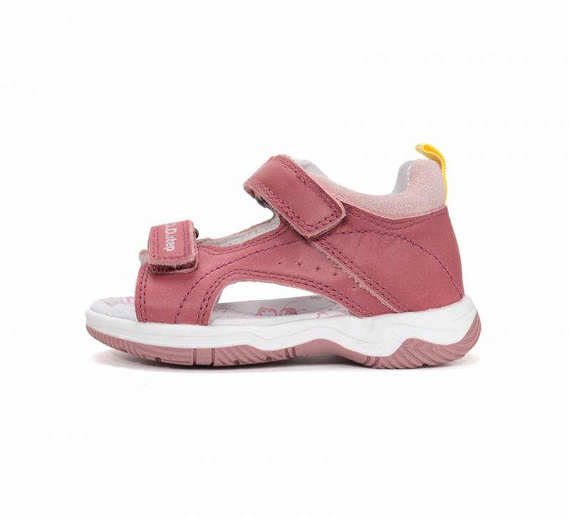 Kényelmes, egyszerű és minőségi választás a DD Step! Zárt sarokrésszel rendelkezik ez a szandál, orra pedig nyitott, ami engedi hogy kicsit tovább nöjjön a gyerek lába a cipőcseréig. Valódi bőrből készült, talpa pedig kicsit keményebb, kevésbé hajlik, viszont jól tapadó természetes gumiból van.