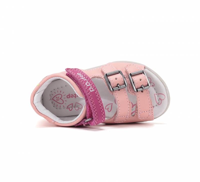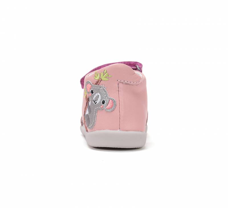 Rózsaszínű, koalamedvével díszitett kislány szandál a DD Step-től! Valódi bőr felsőrész és talpbetét, talpa pedig természetes gumitalp. Két csattal, valamint egy tépőzárral állítható.