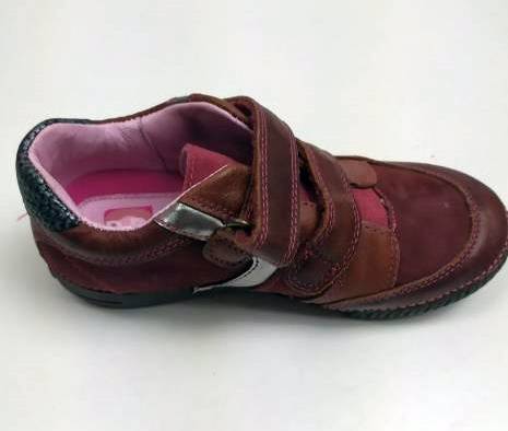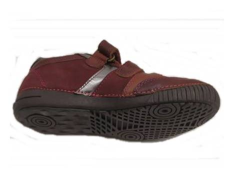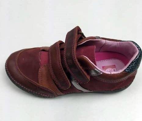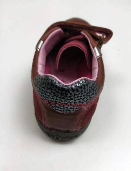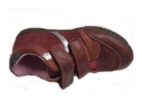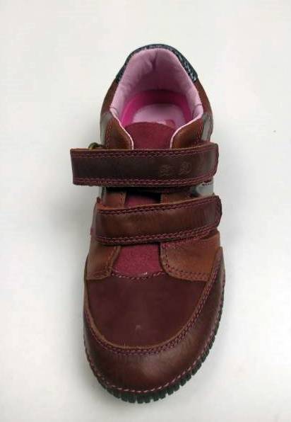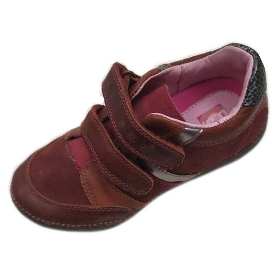 Bőr gyerekcipő, bordó színben a DD Step-től. Két tépőzárral szabályozható, orr része erősített, így a gyerek lábujjait és a cipőt is jobban védi. Valódi bőrből készült a felső része és a belseje is, a talpa pedig természetes gumiból, ami jól tapad, hajlik, és strapabíró.