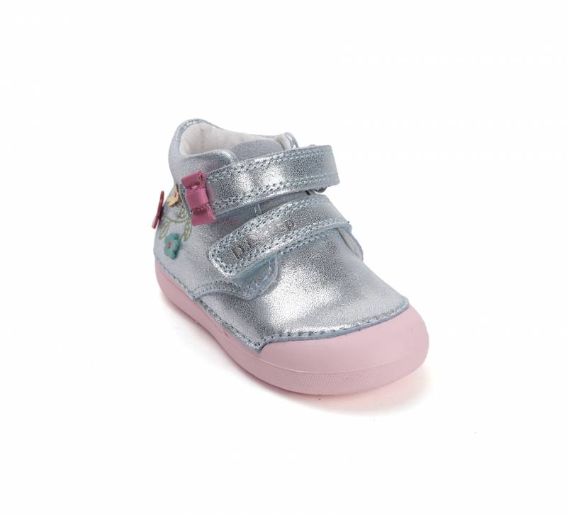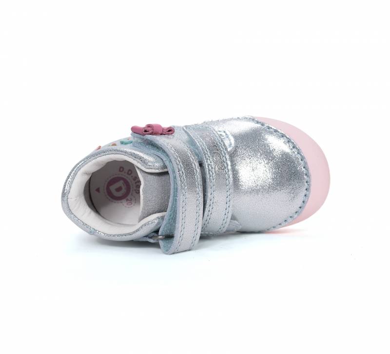 Vidám dizájn és megbízható tartás, a cipő emelt szárának köszönhetően. Fényes bőr felsőrésze biztosítja, hogy mindenkit lenyűgözzön a gyerek cipője. A DD Step kizáróan csak minőségi anyagokból dolgozik, és ez a cipőcske sem kivétel, talpbetétje szintén bőr, sőt, még kivehető is! A cipő talpa pedig természetes gumiból készült, így tapadást biztosítva.