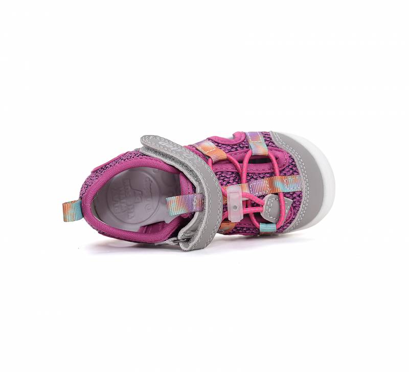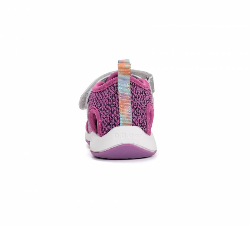 Ez egy lány szandál a DD Step-től, ami gyorsan szárad, lila színű valamint zárt az orra. Tépőzárral és gumifűzővel állíthato, talpa jól hajlik valamint természetes kiválóan tapadó gumiból készült.
