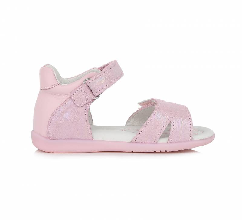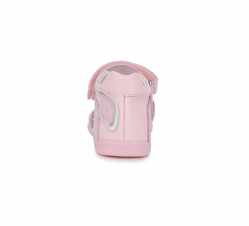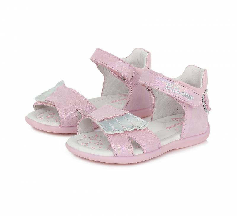 Rózsaszín lány cipő két tépőzárral ellátva, közülük az egyik szárny kinézetű. Bőrből készült, a DD Step-től van. Természetes gumitalppal rendelkezik.