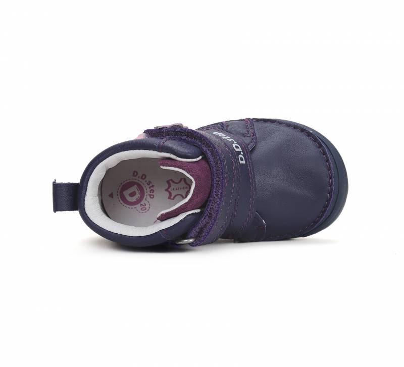 A DD Step gyerekcipő kívül-belül valódi bőrből készül, így biztosítja a láb megfelelő szellőzését és egészséges fejlődését. A hajlékony talp támogatja a természetes mozgást, a megerősített orr-rész pedig védi a cipőt és a gyerek lábát a mindennapi játék során. A kivehető bélés könnyen tisztítható, így a cipő hosszú ideig megőrzi kényelmét és higiénikusságát. Magas szára támogatást nyújt a boka számára.