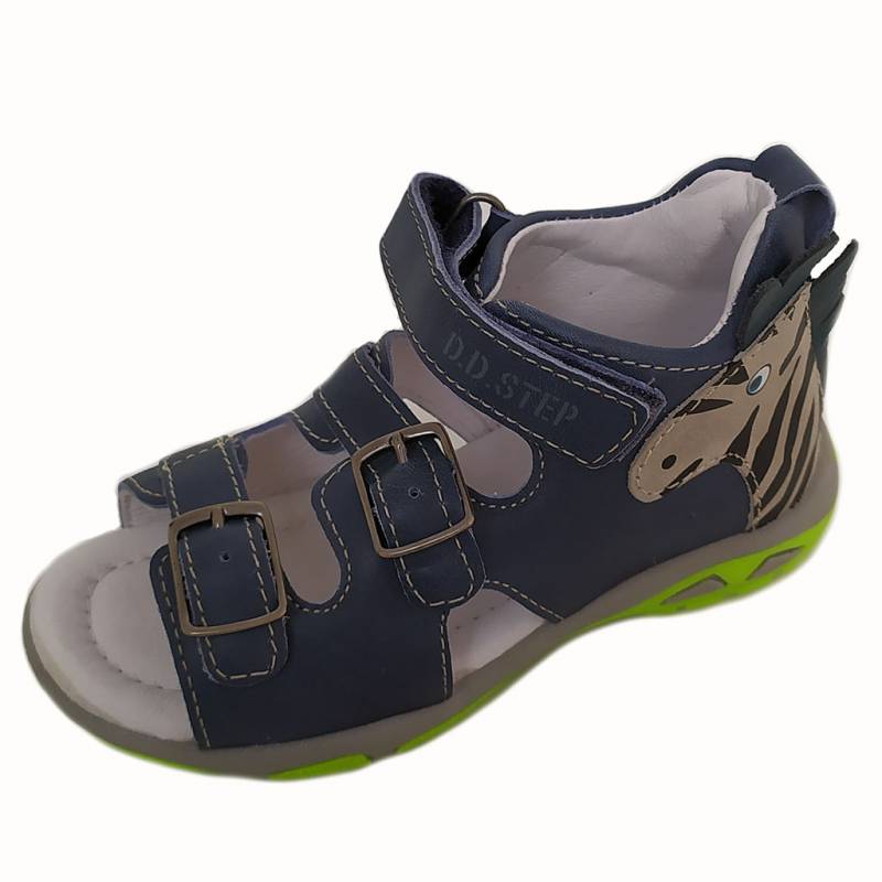 Az orra nyitott, sarokrésze zárt ennek a DD Step szandálnak. A zárt kéreg stabil tartást biztosít a boka számára. Elsősorban normál/széles lábfejhez ajánlott. A strapabíró és rugalmas cipő talprész erős támasztékot ad a talpnak. Utcai viseletre és váltólábbelinek is egyaránt alkalmas.