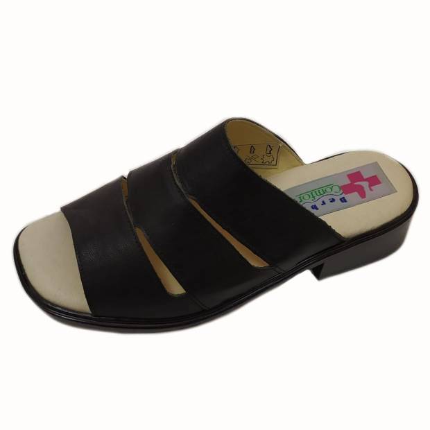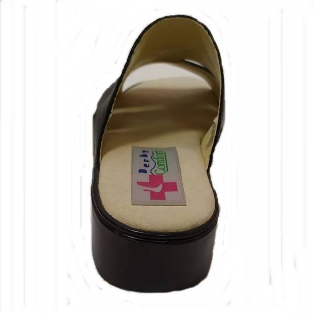 Könnyed tavaszi-nyári női papucs. Fazonja kényelmes, nadrághoz, szoknyához egyaránt viselhető. Klasszikus fekete színe szolid megjelenést kölcsönöz. Sarka nem túl magas, ezért fiataloknak és idősebbeknek is bátran ajánljuk. Puha talpbélése kíméli a lábat.