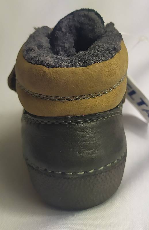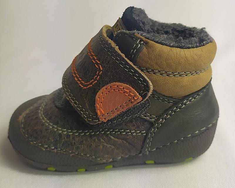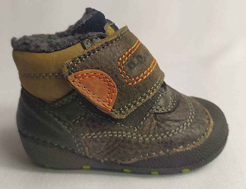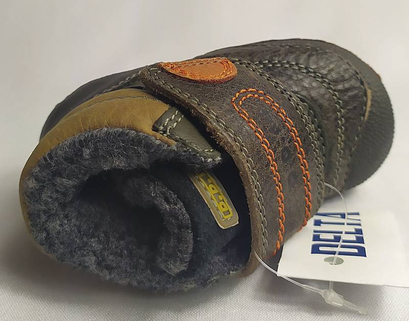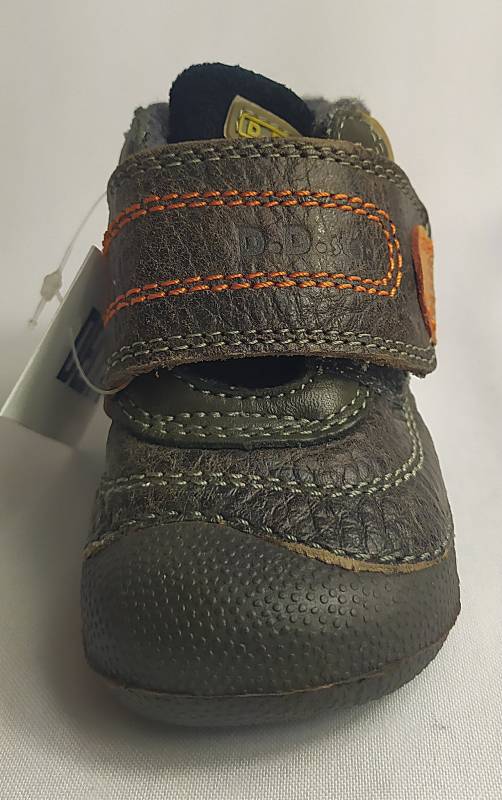 Apró baba lábakat melegen tartó, DD Step bőr gyerekcipő. A bélése jó puha és meleg, hogy véletlen se fázzon a gyerek lába. Egy tépőzárral lehet szabályozni. A cipő orr része erősített.