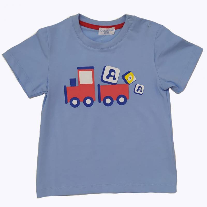 Világoskék fiú póló, vidám autós mintával.