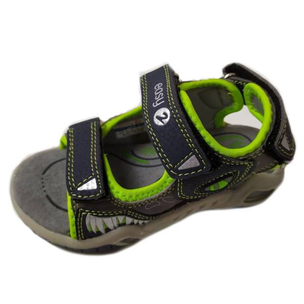 Vagány,kényelmes fiú szandál. Három tépőzárral lehet a lábra igazítani, így igazán praktikus és komfortos viselet. Puha talprésze kíméli a lábat, pántjai jól tartják a lábfejet és a bokát. Oldalát sárkány motívum díszíti.
