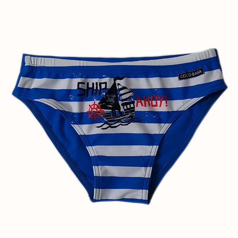 Divatos kék csíkos Coco Bana fiú úszó, hajós mintával. Ideális a forró nyári napokon.