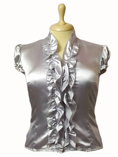 Rövid ujjú, női, fodros alkalmi blúz.