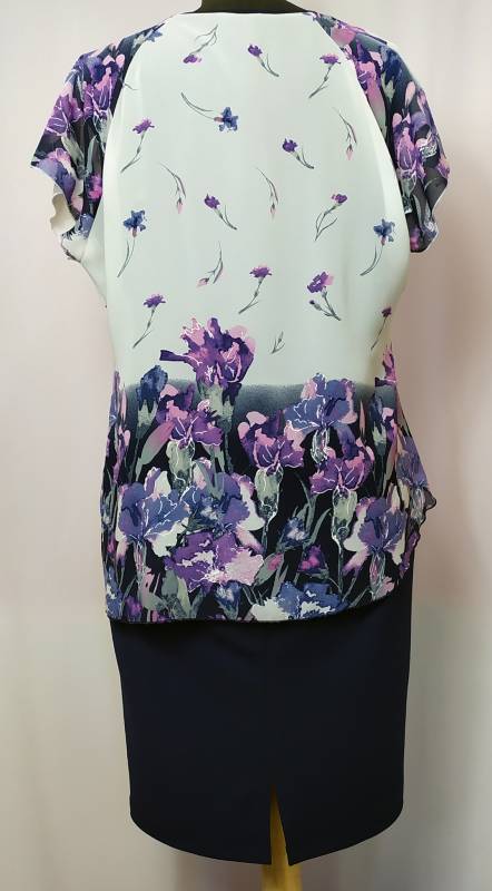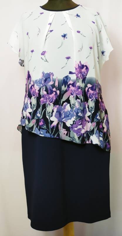 Női, alkalmi virágmintás, rövid ujjú egyberuha, 44 és 48as méretben elérhető.