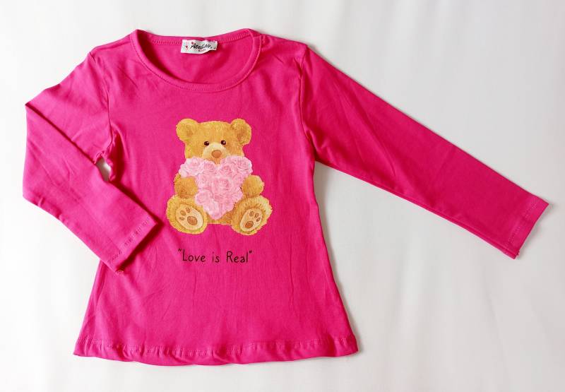 Rózsaszínű, macis hosszú ujjú felső, lányoknak, több méretben,