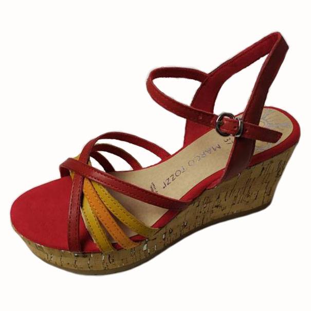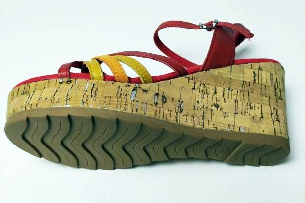Könnyed tavaszi-nyári szandál. Platform kalakítása igen kényelmes és nagyon divatos. Az emelt talprésznek parafa hatású strukturált mintája van, melyet ezüst színezés tesz különlegessé. Vékony pántjai körülölelik a lábfejet. Puha talpbélése kíméli a lábat.