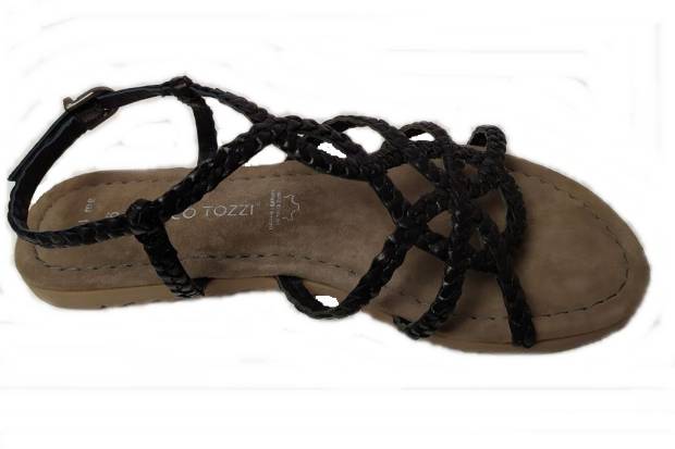 Lapos talpú, hétköznapi használatra, pihenéshez, nyaraláshoz készült ez a kis fekete pántos könnyű szandál.