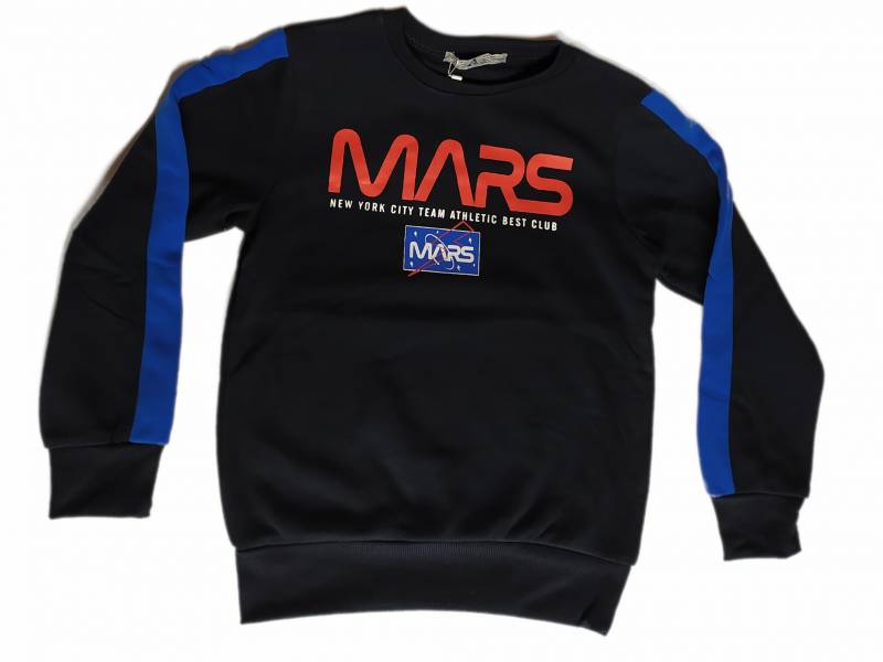 A fiúk szeretik a világűrt. Ez a hosszú ujjú MARS feliratú bolyhos pulóver, jó választás a kis űrutazóknak.