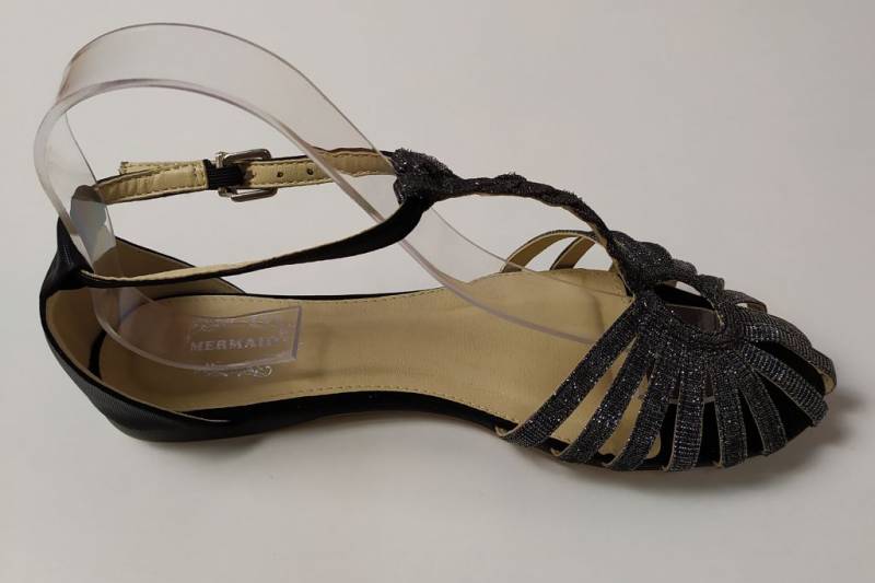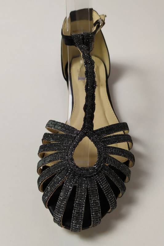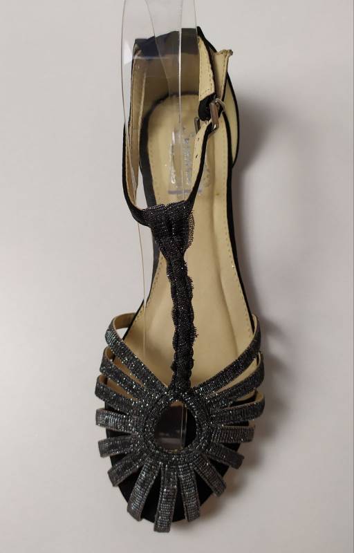 Könnyed tavaszi-nyári viseletet biztosító alkalmi szandál. Fazonja kényelmes, nadrághoz, szoknyához egyaránt viselhető. Divatos sötétszürke színe ezüsben fénylik. Az elülső pántok csepp alakban futnak össze a lábfejen, majd egy fonott szál vezet a bokához . Sarokrésze zárt, így remekül tartja a bokát. Sarka nem túl magas, ezért fiataloknak és idősebbeknek is bátran ajánljuk.