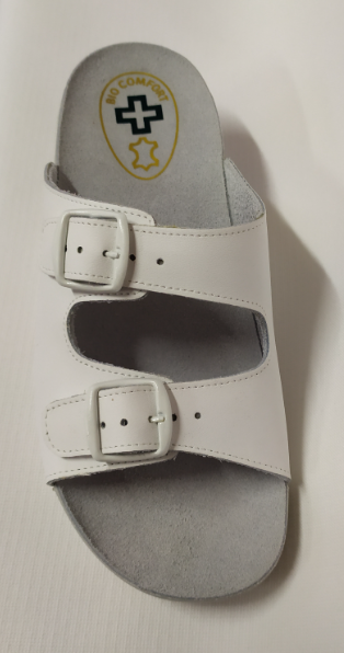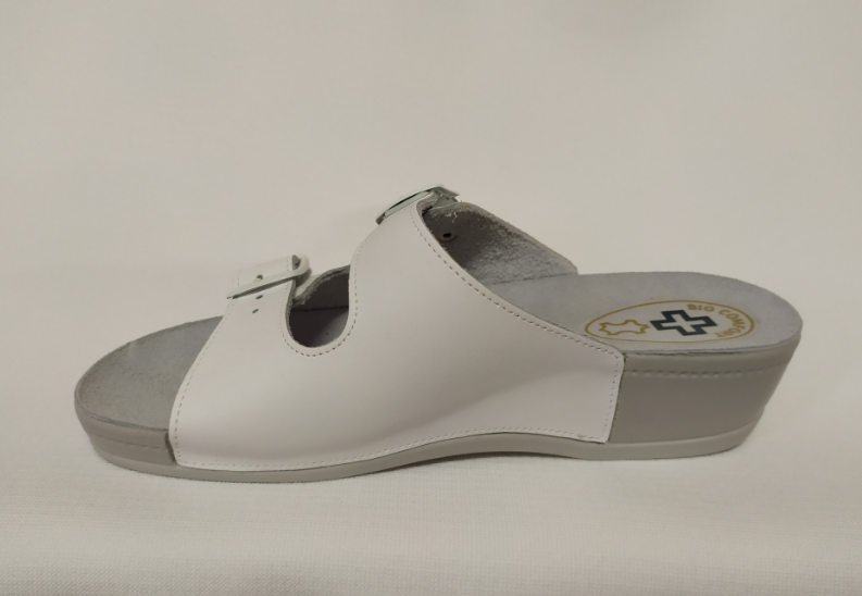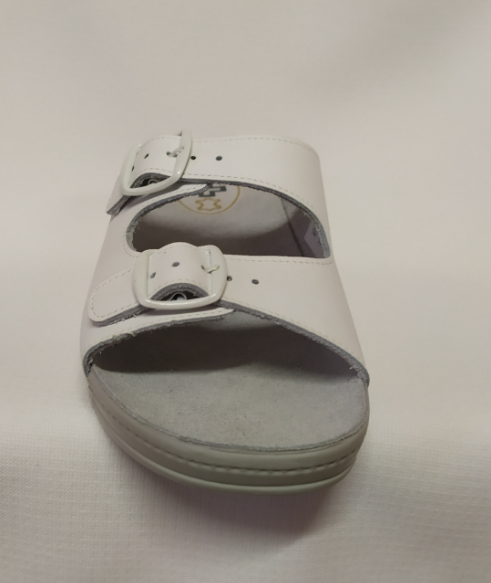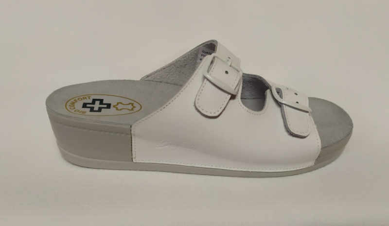 Fehér színű bőr gyógypapucs, két darap pánttal állítható. Magyar termék, kényelmes, minőségi és megbízható.