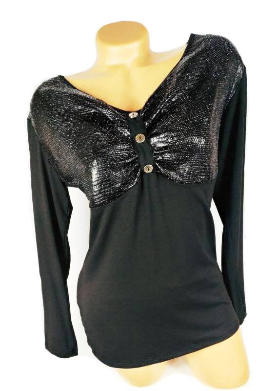 Női, hosszú ujjú, fekete felső.