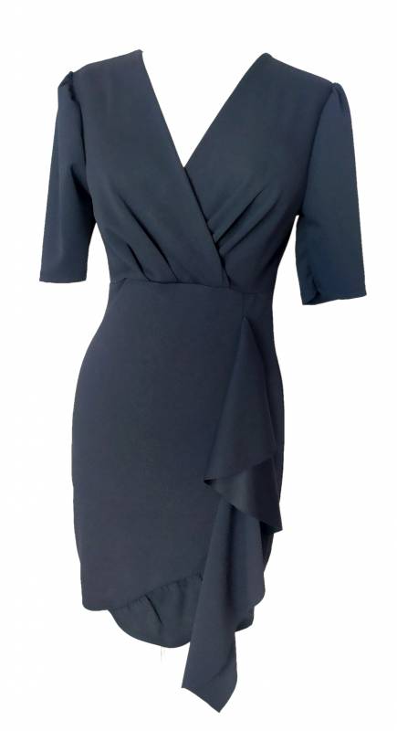 Elől különleges fodorral díszitett alkalmi ruha. Kis méretű, inkább S-es.