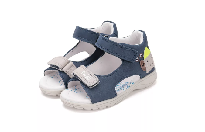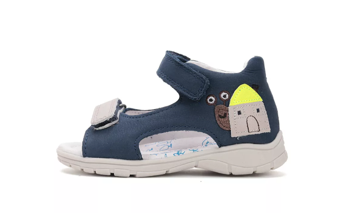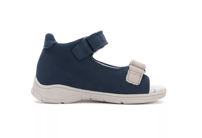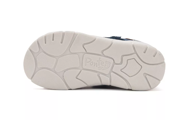 Egyenesléptetős talpú csigaházas Ponte 20 bőr gyerekszandál kék színben. Két tépőzárral állítható. A cipő talpa természeteg gumiból készült, ami strapabíró, jól tapad és hajlik. A befele dőlő bokák egészséges fejlődését biztosítja ez a szupinált cipő.