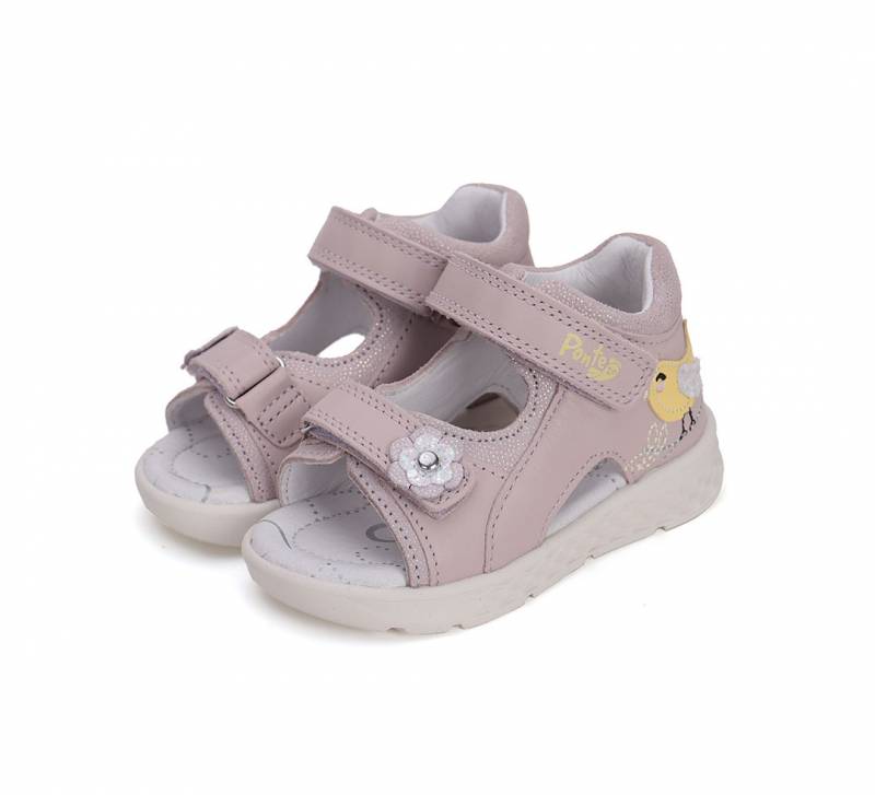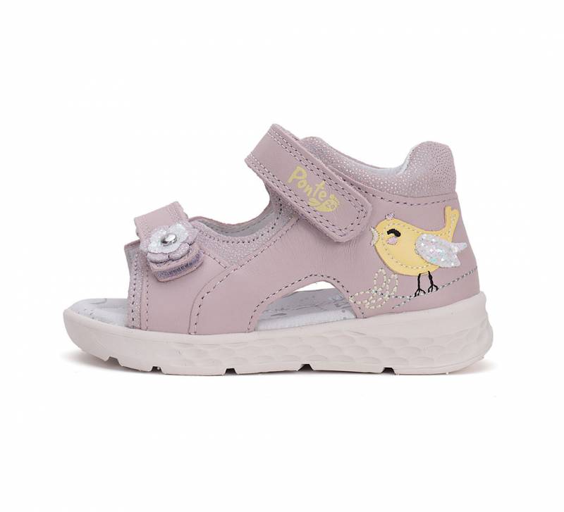 Mályva színű kismadaras szupinált lány cipő a DD Steptől, Ponte 20 név alatt. Befelé dőlő bokák számára készült, hogy egészségesen tudjon nőni tovább a gyerek lába. Kívül-belül bőrből készült.