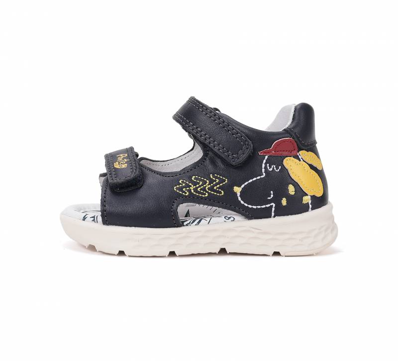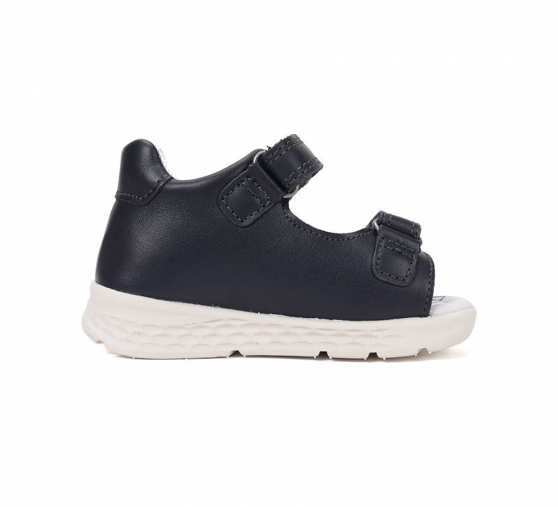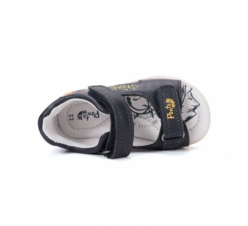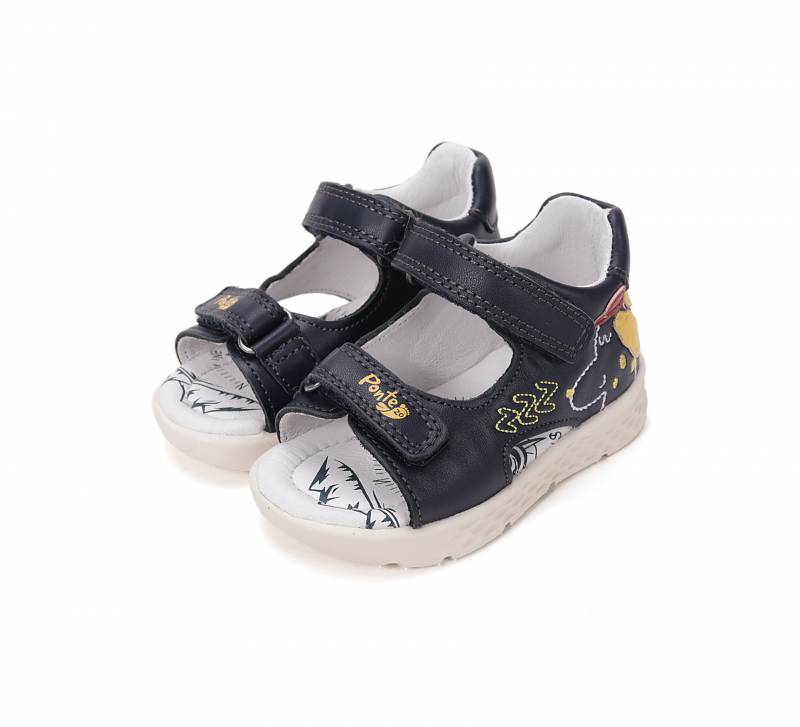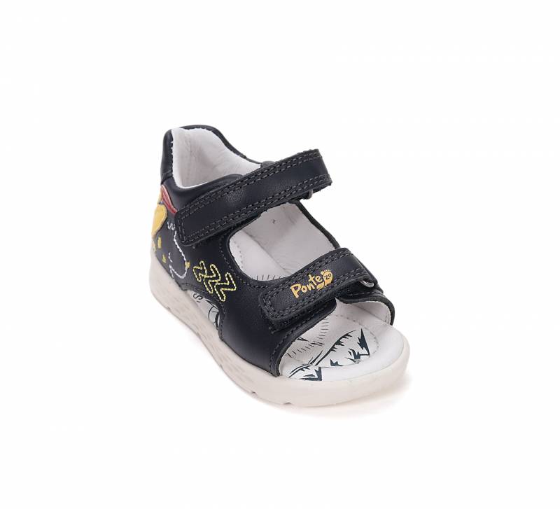 Két tépőzáras fiú szandál, zárt sarokrésszel és nyitott orral a Ponte 20-tól. Sötétkék színű, valódi bőrből készült.