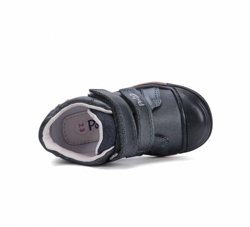 Ez a DD Step valódi bőr gyerekcipő a mozgékony mindennapokra készült: erősített orra ellenáll az ütődéseknek, rugalmas talpa kíméli a lábat futás és játék közben. A kivehető talpbélés higiénikus, könnyen tisztítható megoldás, a valódi bőr felsőrész pedig tartós és jól szellőzik.