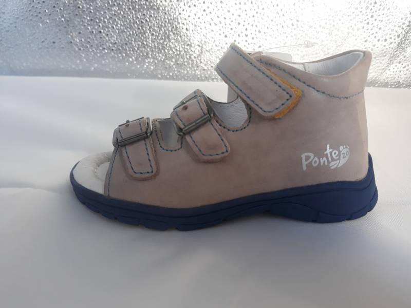 Tépőzárral és csattal szabályozható, zárt kérgű (sarokrészen zárt) szandál, mely stabil tartást biztosít a boka számára. A Ponte 20 kizárólag szupinált cipőket gyárt, a befele dőlő lábak egészséges továbbfejlődésének érdekében. Elsősorban normál/széles lábfejhez ajánlott