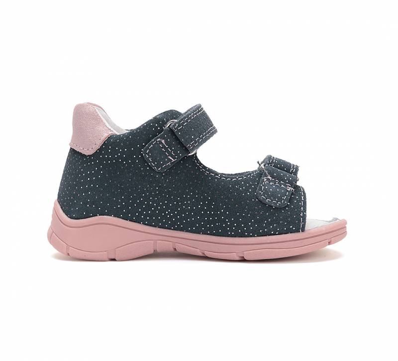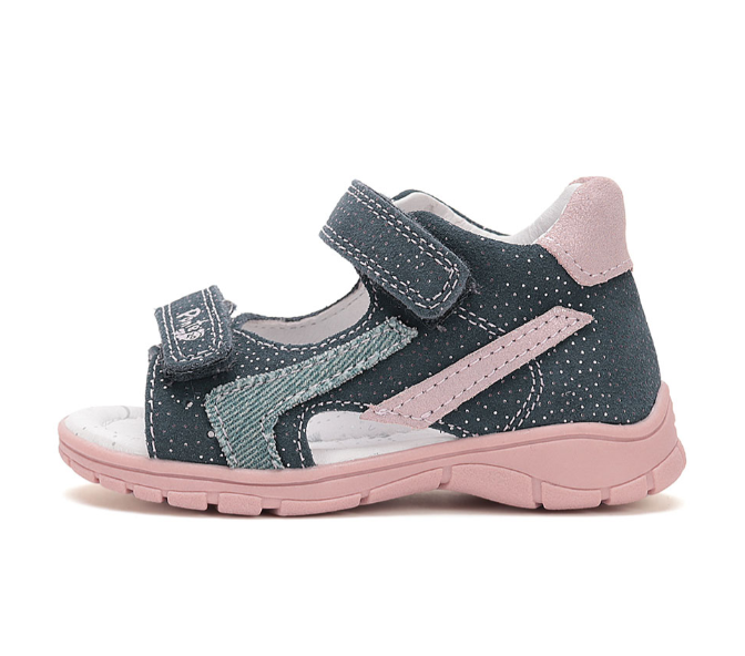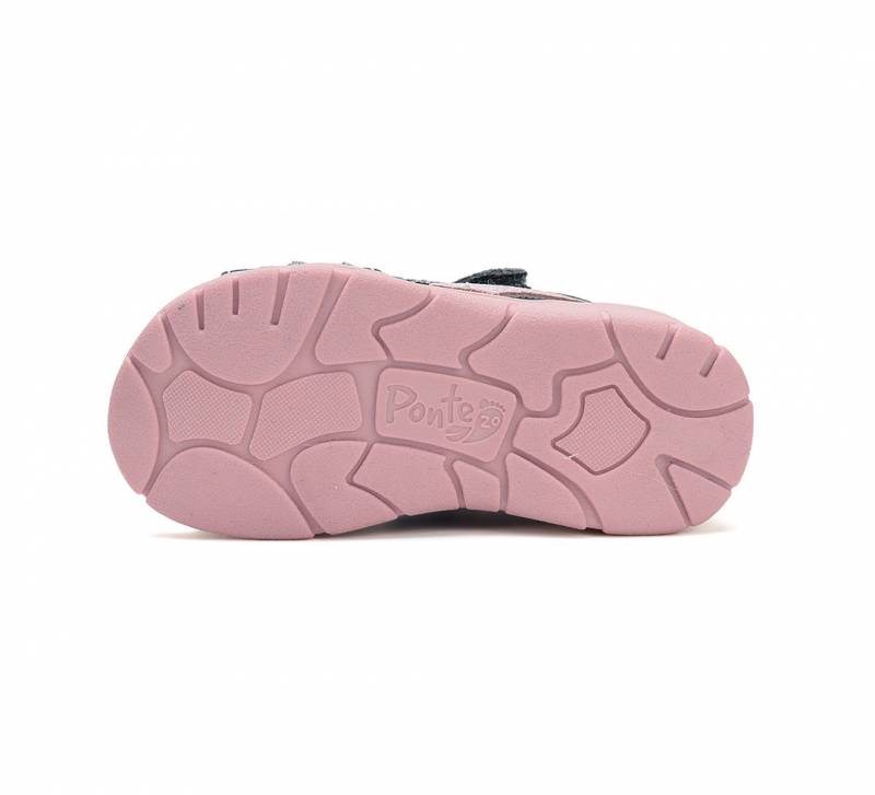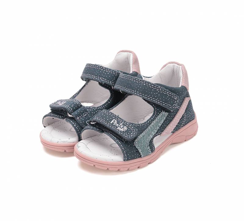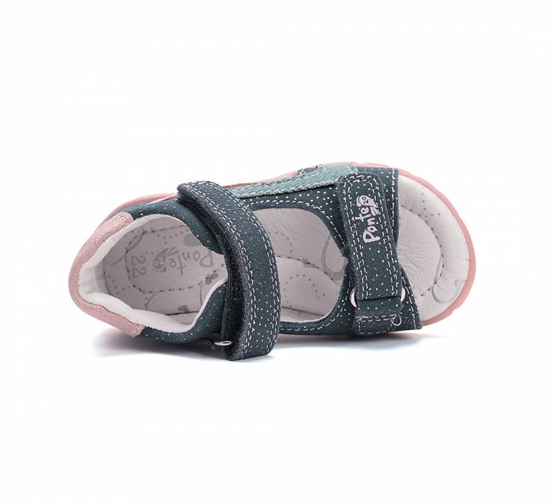 A Ponte 20-t a DD Step gyártja, így a minőség garantált. Szupinált lány szandál két darab tépőzárral, sötétkék színben, rózsaszín és világoskék csíkkal. Bőrből készült. Befelé dőlő bokákra kitalált.