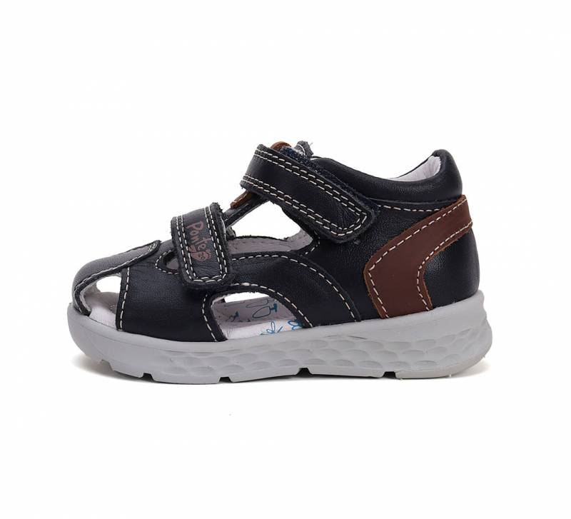 Zártorrú gyerekszandál befele dőlő lábak számára a Ponte 20-tól. Mivel szupinált, így segítí hogy a gyerek lába egészségesen fejlődhessen tovább. Bőr kíbűl belül. Talpa természetes gumiból van, jól tapad, hajlik és nehezn kopik.