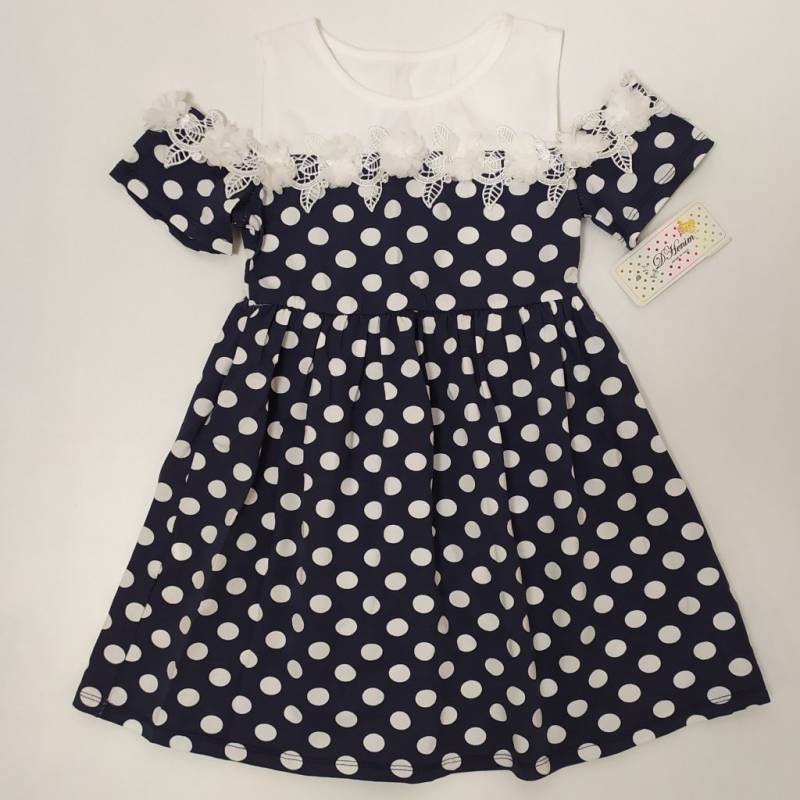 Nyári / alkalmi pöttyös ruha lányoknak., csipkés szegéllyel