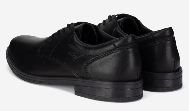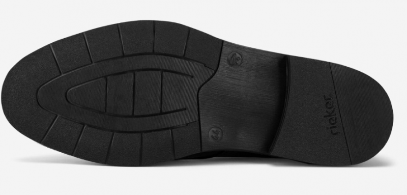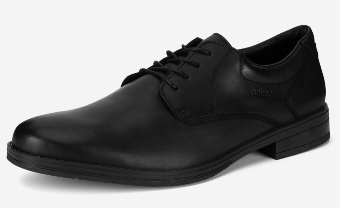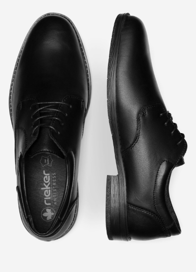 Elegáns és stílusos fekete bőr férficipő a Riekertől, antistress kialakítással. Cipőfűzővel használható. A talpa jól hajlik, optimális ütéscsillapítással rendelkezik.