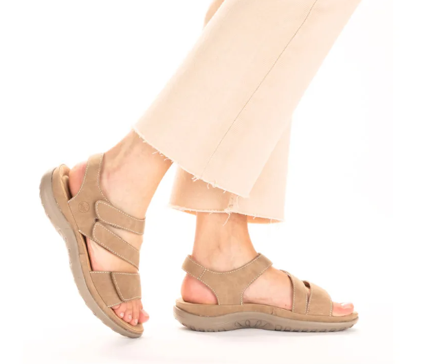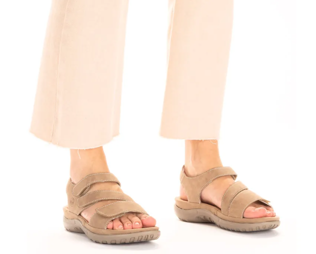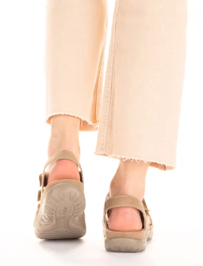 Ha egy kényelmes szandál kell, ami igazodik a lábfejhez, ez egy kiváló választás! Nagyon egyszerű a kialakítása, két tépőzárral használható, aminek gumis kialakítása szépen igazodik a láb kontúrjához. Bézs színű.