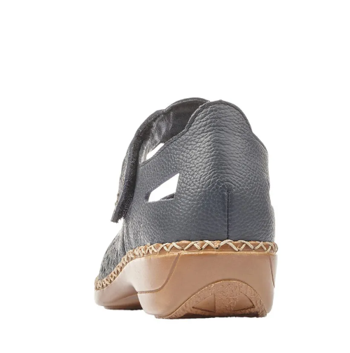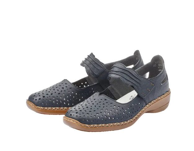 Itt az ideje megpihenni egy kicsit ebben a szellős, kényelmes félcipőben! Bőr anyagának köszönhetően higénikus és egészséges a cipő. Sötétkék színű, egy darab tépőzárral lehet szabályozni, sarka enyhén emelt, valamint keskeny lábfejekre ajánlott (E)
