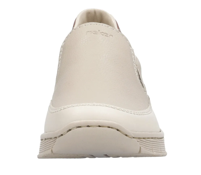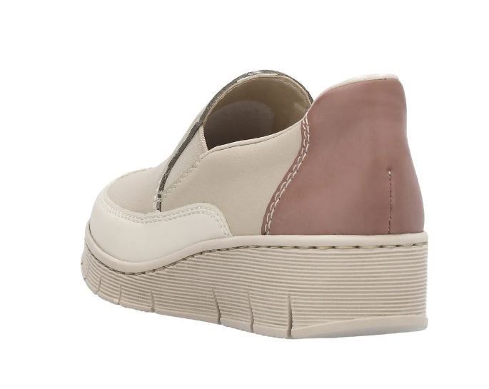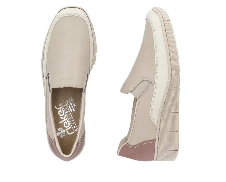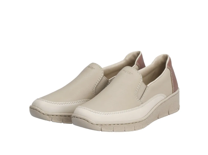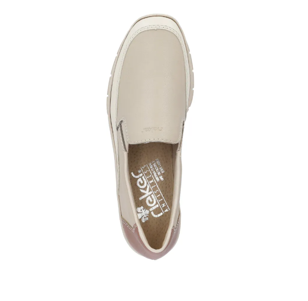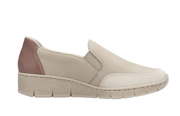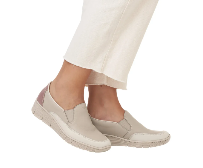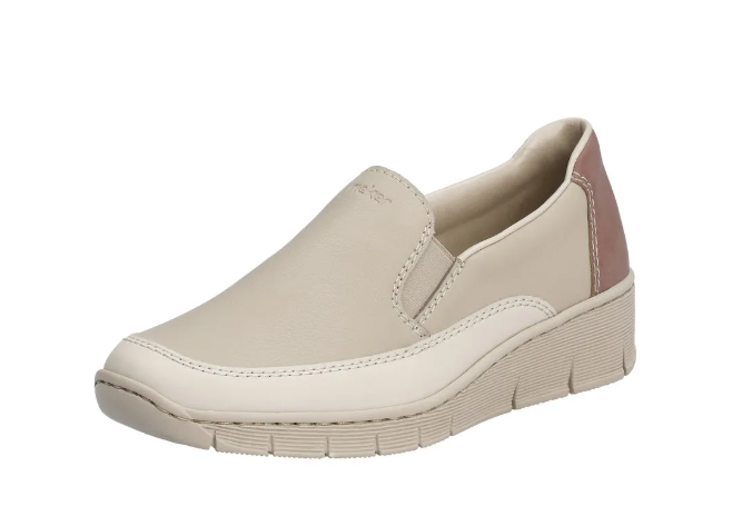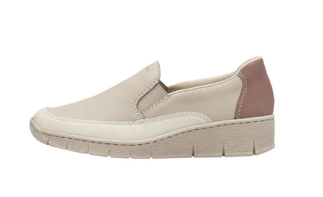 Bézs színű belebújós női félcipő. Keskeny lábakra ajánlott. Nem csak a színe kellemes, hanem a viselete is. Bőrből készült, sarka emelt, talpa jól hajlik és ütéscsillapított, talpbetétje pedig jó puha és kényelmes.