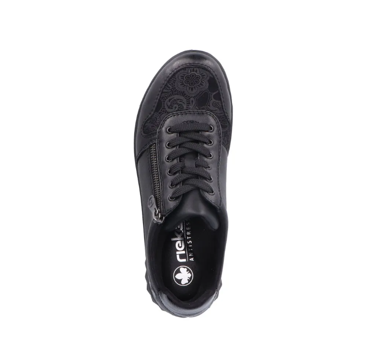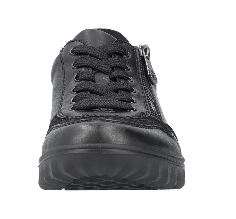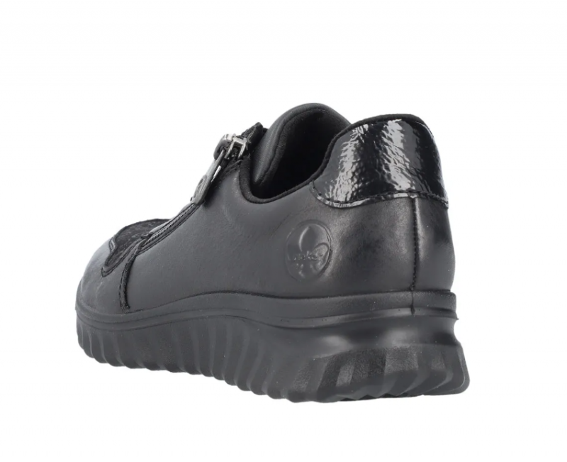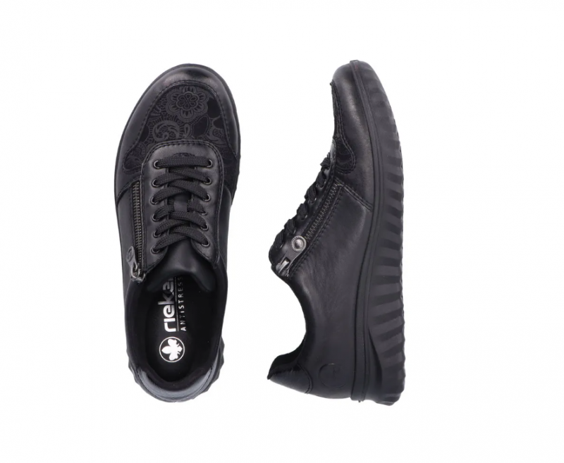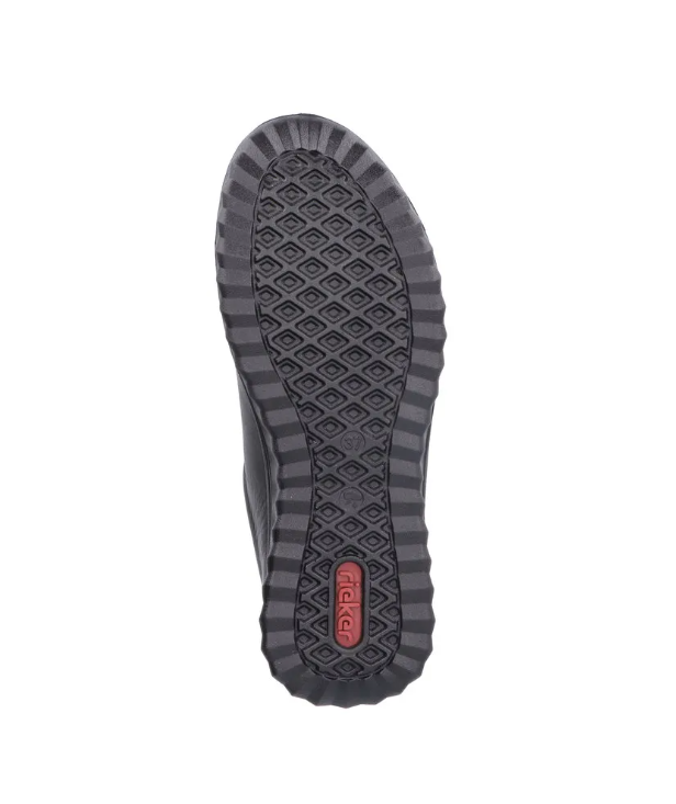 Ez a Rieker női átmeneti cipő divatos vonalvezetéssel, de praktikus adottságokkal – puha belső bélés, optimális bőség és rugalmas talp – szolgálja a komfortot. A külső anyag formatartó, kopásálló és könnyen tisztítható. A belső bélés légáteresztő, megelőzi a kellemetlen hőérzetet hosszabb viselés alatt is. A komfort bélés és a bőségméret révén a cipő nem szorít, nem nyom. A talp hajlékony, mégis stabil – a járás természetes érzése megmarad. A díszítő varrások és perforációk finoman díszítik a modellt, miközben elegáns megjelenést kölcsönöznek. A modell ideális kombinációja stílusnak és praktikusságnak – őszi-tavaszi napokra. A Rieker márka Antistress rendszere tovább növeli a járáskényelem élményét. Összességében ez a modell remek választás lehet mindennapi használatra is.