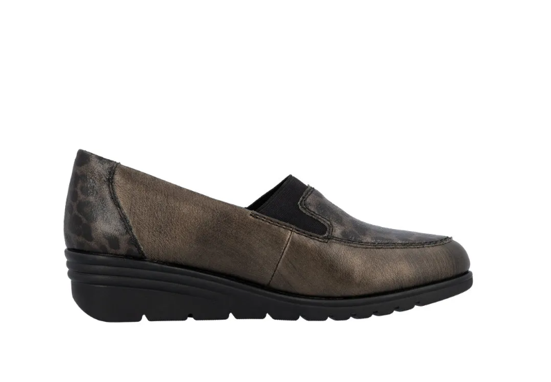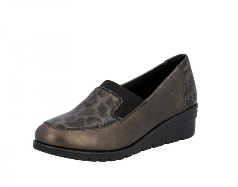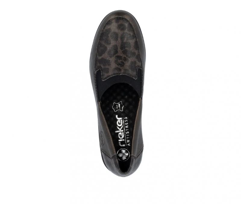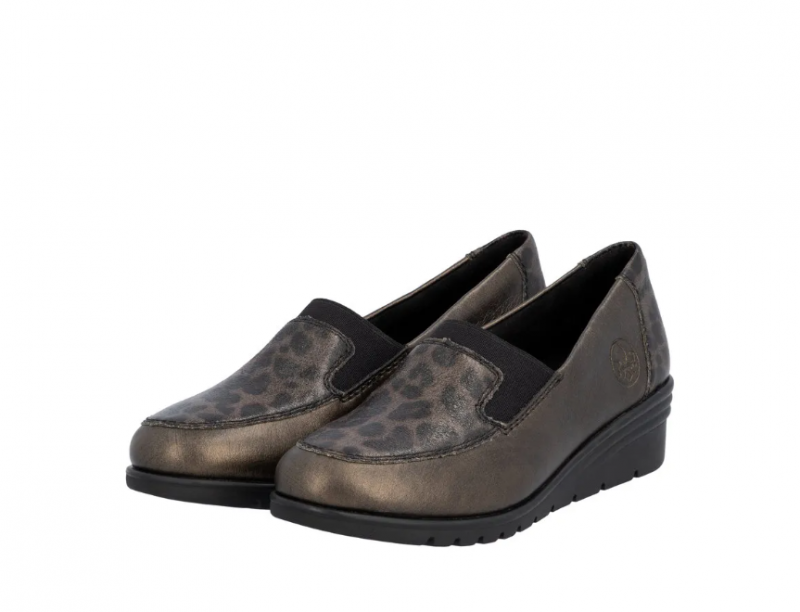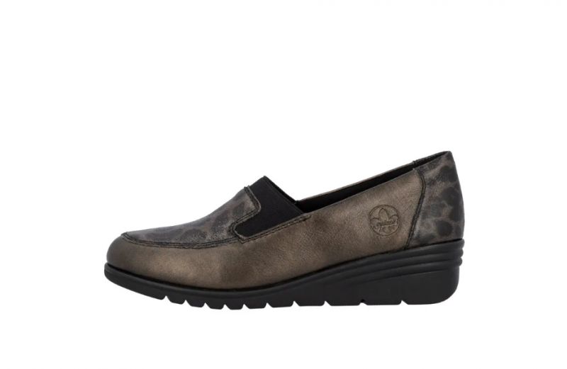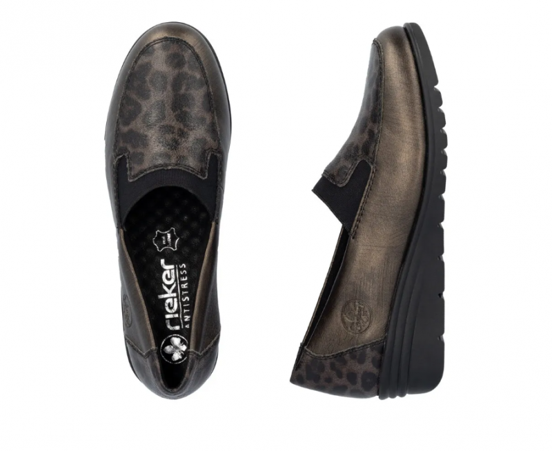 Ez a Rieker cipő kiváló alkalmi cipőnek, vagy akár a mindennapokhoz. Barna metálos a színe, orrán és sarkán díszmintával. Bőrből készült, és a Rieker Antistressnek köszönhetően kényelmes is. Kialakítása könnyű, talpa ütéscsillapított és jól hajlik, a belső talpbélése pedig puha és kényelmes.
