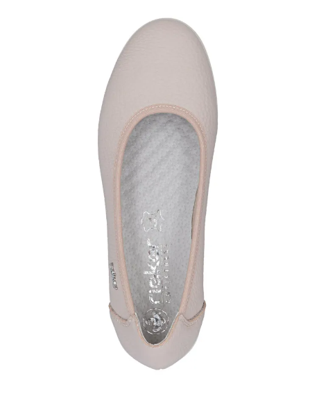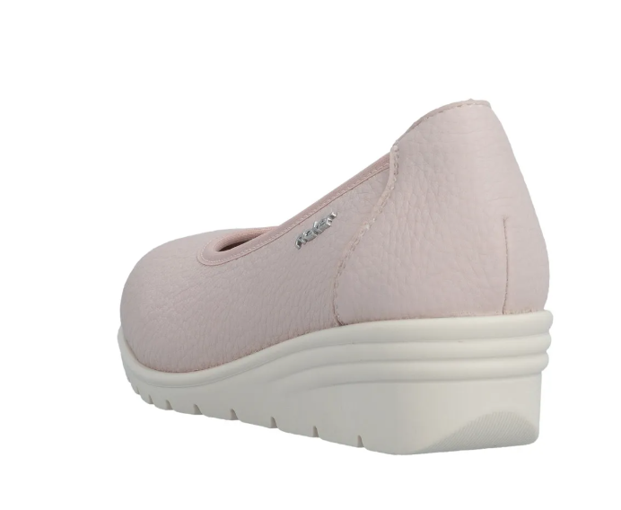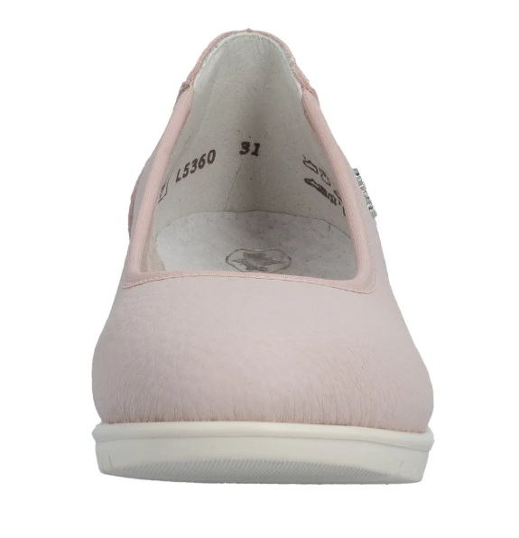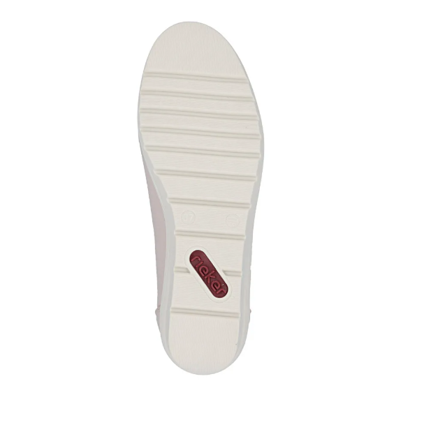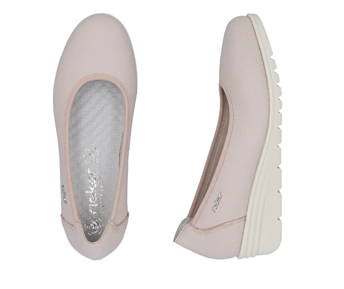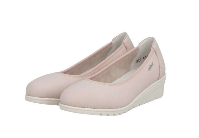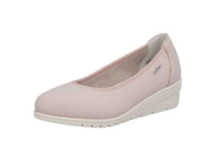 Kecses és elegáns, kellemes rószaszínű zárt félcipő, emelt sarokkal a Riekertől. Kizáróan csak minőségi anyagokból, talpa jól tapadó gumi, enyhén bordázva, kívül bőr, és talpbetétje is bőr! Puha, jól hajlik, könnyű.