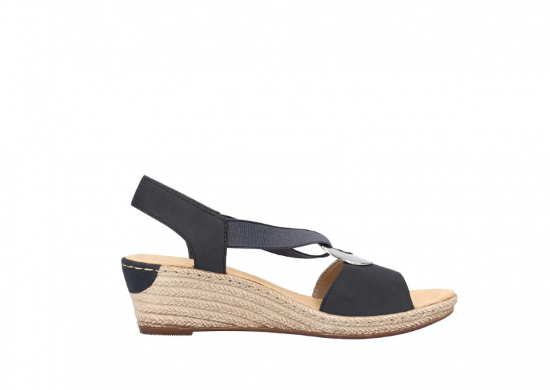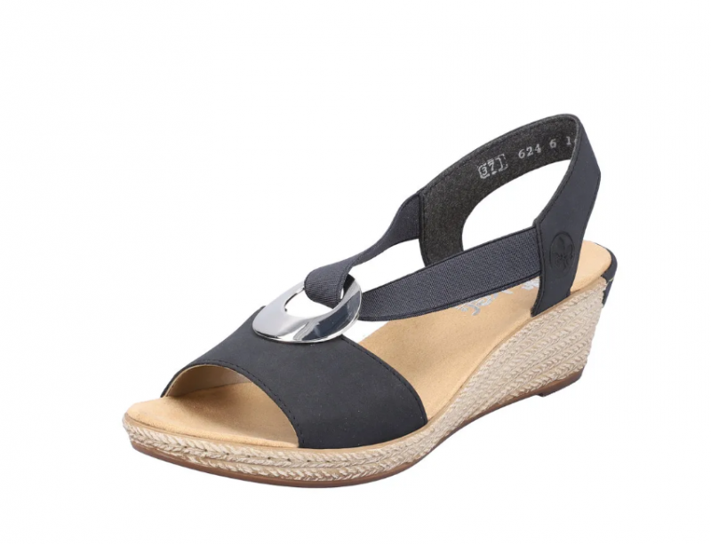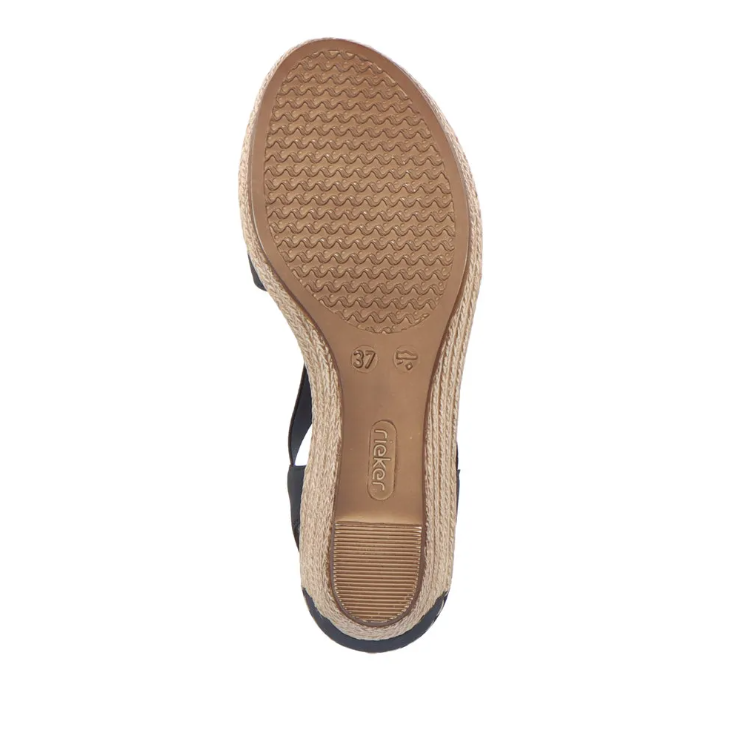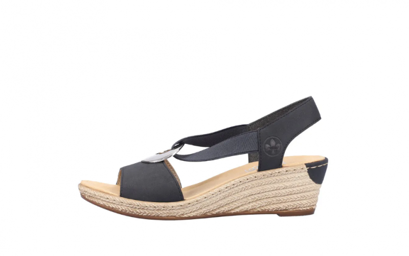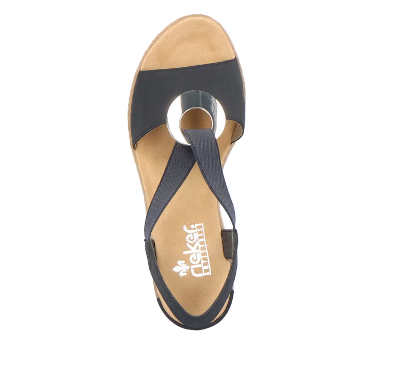 Magasított sarkú női Rieker szandál normál lábszélességre kitalálva (F szélességű). A Rieker Antistress kialakításnak köszönhetően kényelmes, mégis divatos. könnyed, jól hajlik, ütéscsillapított és kellemes a talpa.
