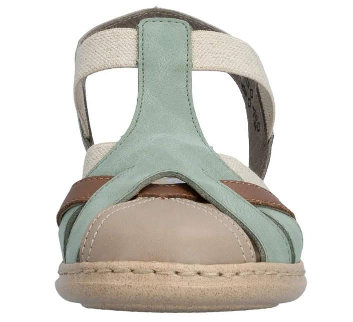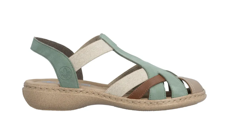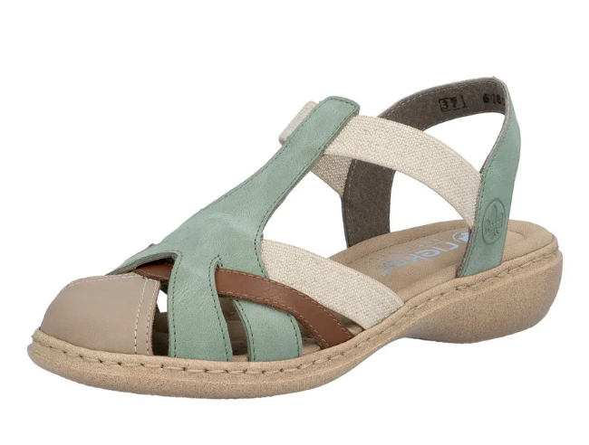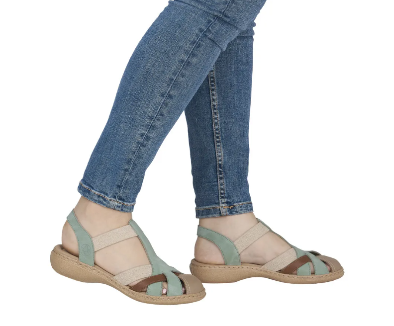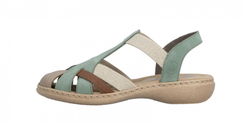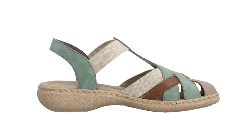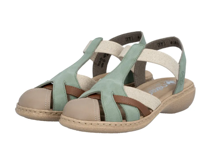 Nyári/tavaszi szandál, zárt orr- résszel nők számára. Zöld színű, gumis kiegészítéssel rendelkezik, aminek köszönhetően egyszerű fel és le venni a cipőt, valamit igazodik a lábhoz. Sarka lapos, nem emelt. A talpa jól hajlik, ütéscsillapított, talpbetétje pedig nagyon kényelmes és puha. A könnyű kialakításnak köszönhetően a szandál is pihekönnyű.
